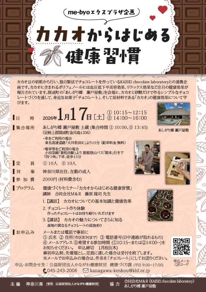1月17日(土曜)に開成町で「カカオからはじめる健康習慣」を実施します。