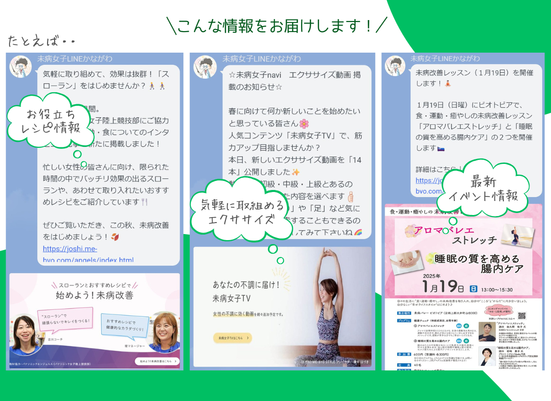 また、神奈川県エリアで行われている未病女子のためのイベント情報も配信します。